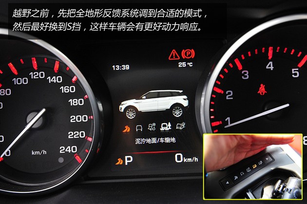 越野性能方面,極光有路虎招牌式的全地形反饋適應(yīng)系統(tǒng)。提供普通駕駛,草地/沙礫/雪地模式,泥沼/車轍模式或沙地模式等四種駕駛模式的切換。另外,在啟動自適應(yīng)動態(tài)系統(tǒng)的情況下,第五種駕駛模式——動態(tài)模式也將開啟。此時(shí)儀表會變成紅色,自適應(yīng)系統(tǒng)會更頻繁的對車身進(jìn)行監(jiān)測,可以瞬間對路面狀況作出響應(yīng),并最大可能地降低車輛側(cè)傾的幅度。