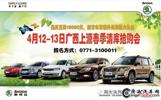 4月12-13日上海大眾斯柯達(dá)廣西上源春季清庫搶購會,F(xiàn)金優(yōu)惠,最高直降18000元,部分車型額外送超值大禮包,優(yōu)惠多多,數(shù)量有限;顒(dòng)期間,全系車型開啟車展特惠底價(jià)模式,比車展期間更加優(yōu)惠,比車展置換價(jià)更低,比車展禮品更加豐富,比車展環(huán)境更加優(yōu)越、更加便利,就是讓您實(shí)惠購車。廣西上源推出一站式服務(wù),便捷周到的人性化服務(wù),讓您買車放心,用車省心,您Hold住了嗎?歡迎蒞臨廣西上源斯柯達(dá)展廳。更多驚喜,更多優(yōu)惠盡在廣西上源斯柯達(dá)。