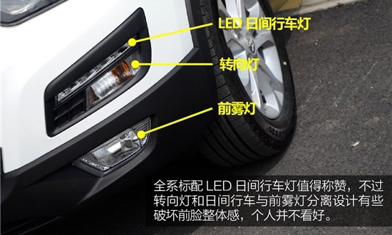 前大燈我最喜歡的是燈眉設(shè)計(jì),看上去更加銳利,而不會(huì)顯得太過平淡。配備的是鹵素?zé)艚M,并且加入透鏡。另外,全系標(biāo)配LED日間行車燈值得稱贊,在同級(jí)別中比較有競爭力。不過轉(zhuǎn)向燈和LED日間行車與前霧燈分離設(shè)計(jì)有些破壞前臉整體感,是值得吐槽的地方。
