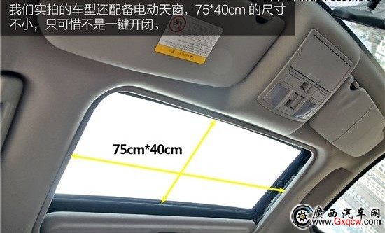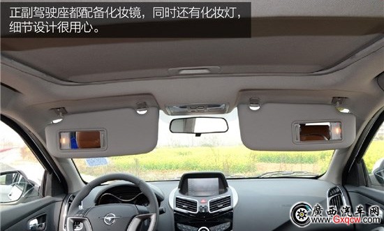 我們實拍的車型還配備電動天窗,75*40cm的尺寸不小,只可惜不是一鍵開閉。另外,正副駕駛座都配備化妝鏡和化妝燈。