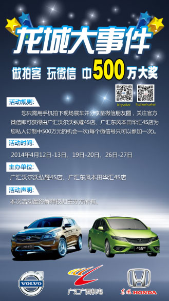 主辦單位:廣匯沃爾沃弘耀4S店、廣匯本田華匯4S店