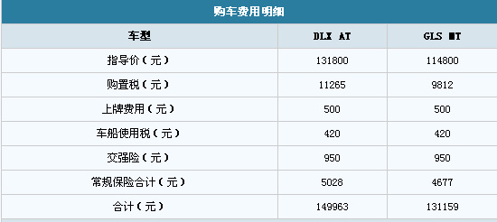 首先我們來看看全款購車需要多少費(fèi)用。以上文推薦的起亞K3S DLX AT和GLS MT為例,購車費(fèi)用明細(xì)如下: