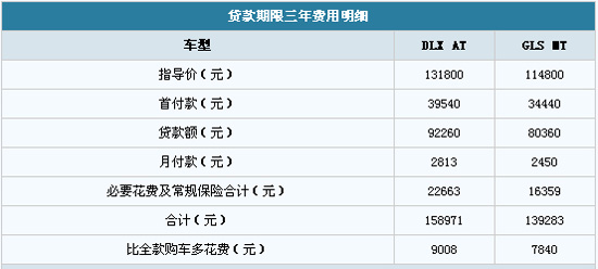 下面我們來介紹一下貸款方式購車,我們以按首付30%,貸款期限三年計(jì)算如下: