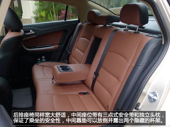 后排座椅同樣寬大舒適,中間座位帶有三點(diǎn)式安全帶和獨(dú)立頭枕,保證了乘坐的安全性,中間靠墊可以放倒并露出兩個(gè)隱藏的杯架。