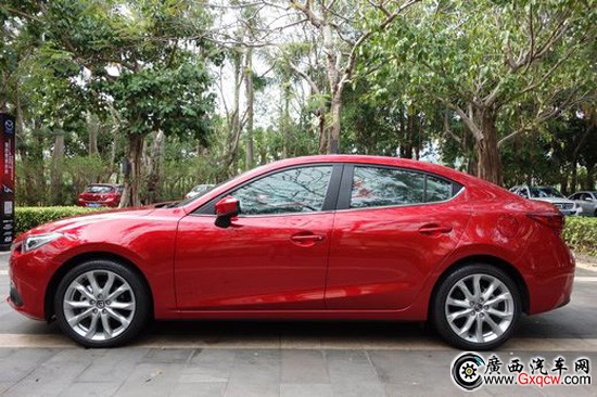 車身側(cè)面,新馬3昂克賽拉的車身比例吸收了豪華車長(zhǎng)車頭、Coupe車型短車尾的設(shè)計(jì)元素,下傾和上揚(yáng)的兩條腰線組合在一起,形似正在奔馳的運(yùn)動(dòng)健將。
