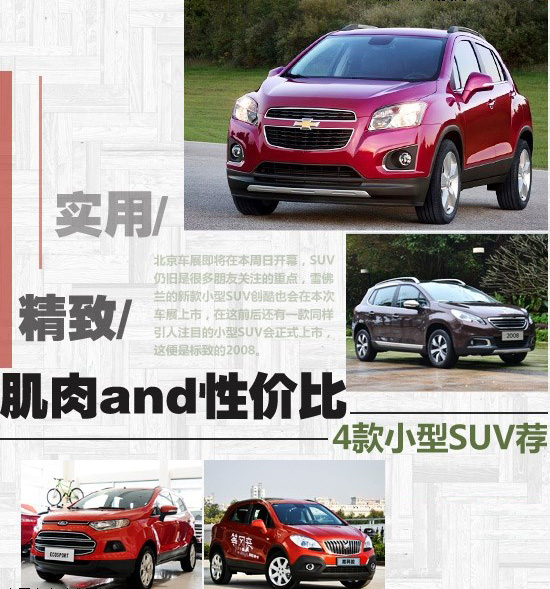 北京車展即將在本周日開幕,SUV仍舊是很多朋友關(guān)注的重點,雪佛蘭的新款小型SUV創(chuàng)酷也會在本次車展上市,在這前后還有一款同樣引人注目的小型SUV會正式上市,這便是標(biāo)致的2008。前期已經(jīng)很多人對這兩款新車投入了很多精力,相比目前小型合資SUV市場上的領(lǐng)先者別克昂科拉和福特翼搏,這兩款新車有什么樣的魅力能夠脫穎而出就是我們今天的主題。接下來,我們就來介紹介紹這四款小型SUV車型的具體信息。