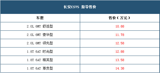 在剛剛開幕的2014北京車展上,長安官方宣布CS75車型正式上市,此次上市車型共計X款,其售價為10.88-14.38萬元。