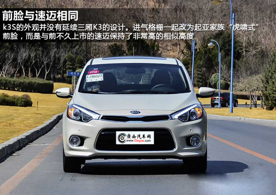 外觀方面,K3S并沒有使用目前三廂K3的外形,而是與不久前上市的雙門跑車速邁幾乎完全相同。也說明K3S試圖走運(yùn)動化的路線。