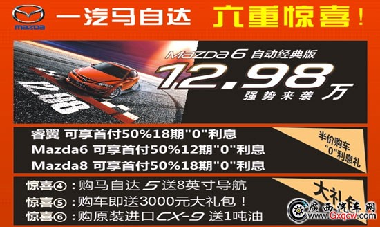 驚喜二:2014款馬自達(dá)6巔峰上市,無敵自動擋車展特惠僅需12.98萬,0利息無憂貸購;