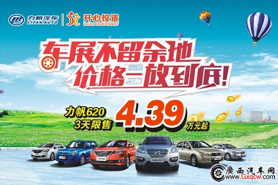五一去哪兒?!到廣西機(jī)電第二十三屆汽交會(huì)賞車、看美女車模、品美食吧!車展買車哪里最實(shí)惠最劃算?!力帆汽車攜手3款新車型力帆330、530、630強(qiáng)力登場(chǎng),熱銷車型力帆SUV-X60全城最低價(jià)僅售67900元起,力帆中級(jí)家轎720越級(jí)版62800元,力帆暢銷經(jīng)典車型620全新升級(jí),車展3天限售43900元,五一車展優(yōu)惠不留余地,價(jià)格一放到底!現(xiàn)場(chǎng)訂車,玩互動(dòng)游戲精美風(fēng)扇、食用大米、桶裝油等實(shí)惠實(shí)用禮品多多!舊車置換、老朋友轉(zhuǎn)介紹購(gòu)車都“油”好禮相送!