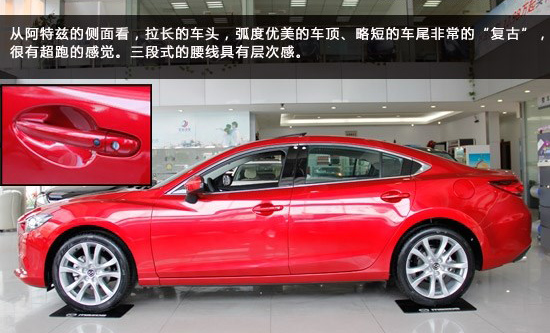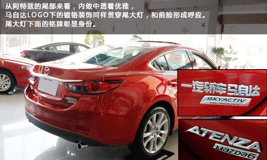 阿特茲的外觀延續(xù)了進(jìn)口版的設(shè)計樣式,“魂動”理念運用自如。加長車頭極富復(fù)古感,“X”型前臉格柵簡潔時尚,盾型中網(wǎng)下方配備的鍍鉻飾條猶如上翹的嘴角,讓犀利的車頭多了一份柔情。超跑式的流線形車身和錯落有致的三段式腰線設(shè)計增強了車身的動感姿態(tài)。尾部則以豐富的線條勾勒出了凹凸有致的造型,厚重的保險杠和雙排氣管設(shè)計凸顯了阿特茲的運動精神。