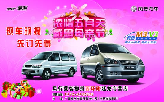 (廣西汽車網(wǎng) 訊)“誰言寸草心,報得三春暉!蹦笎凼鞘澜缟献顐ゴ、最無私的愛,越來越多的人選擇在母親節(jié)期間將最特別的愛獻給最敬愛的人。據(jù)悉,本周末柳州唯一一家風(fēng)行菱智專營店,位于西環(huán)路4S店也針對母親節(jié)推出了現(xiàn)車特惠活動專場。