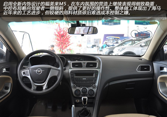 坐進(jìn)車(chē)內(nèi),全新福美來(lái)M5的內(nèi)飾設(shè)計(jì)表現(xiàn)出了與其外觀相統(tǒng)一的風(fēng)格理念。色調(diào)搭配內(nèi)斂居家,摒棄以往的對(duì)稱(chēng)式中控布局,新車(chē)采用了略向駕駛者傾斜的中控造型,使之對(duì)功能區(qū)域的掌控更為輕松快意。其中高配車(chē)型還設(shè)置有7英寸液晶顯示,可提供多媒體影音娛樂(lè)、GPS導(dǎo)航與倒車(chē)視頻影像功能。