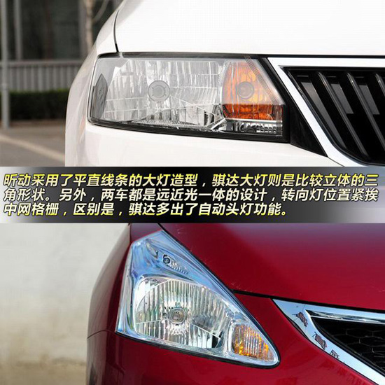 頭燈方面,昕動采用了平直線條的大燈造型,騏達(dá)大燈則是比較立體的三角形狀,兩車都是遠(yuǎn)近光一體的設(shè)計(jì),區(qū)別是,騏達(dá)多出了自動頭燈功能。