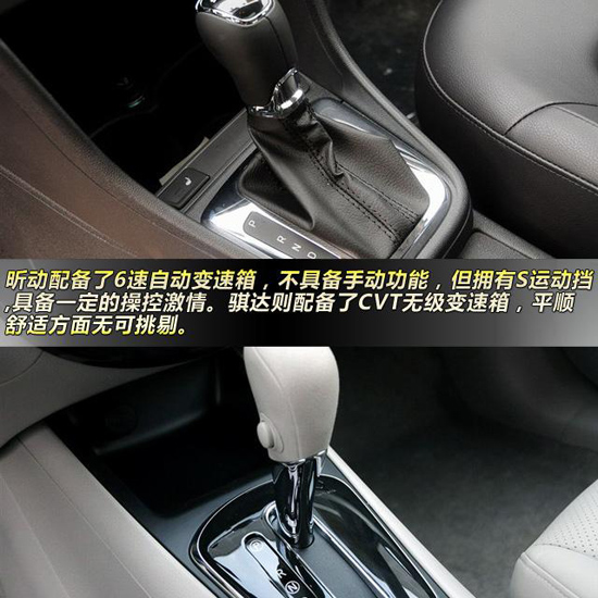 變速箱方面,昕動配備了6速自動變速箱,不具備手動功能,但擁有S運動擋,在S模式下?lián)Q擋轉速提升,能夠獲得一定的駕駛樂趣。騏達則配備了CVT無級變速箱,平順舒適方面無可挑剔。實際上,兩車的變速箱都有自己的優(yōu)缺點,但在同級來看,已經是最高的水準了,可以說不分伯仲。
