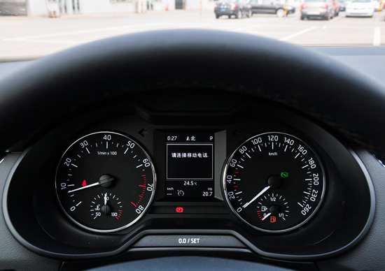 儀表還是有點大眾車型的味道,但又比大眾車型精致時尚不少,原因在于使用了不同的字體和更加復雜的刻度設計。進一步增強了時尚感,也具有了斯柯達特色。