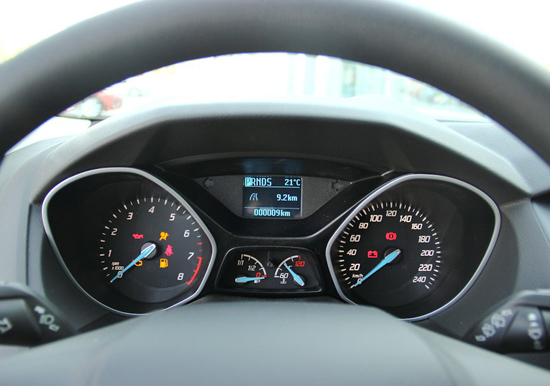 就整體效果而言,?怂股洗钶d的這臺(tái)儀表可謂科技感十足,藍(lán)白相搭配的背光是現(xiàn)如今很多車型的首選,既不刺眼又能突出科技氛圍,加上形似外星人眼睛的外圍炮筒,更加將運(yùn)動(dòng)的一面體現(xiàn)得淋漓盡致。