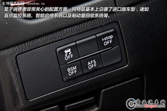 動力方面,一汽馬自達(dá)ATENZA阿特茲將搭載“SKYACTIV-G”系列兩款直噴汽油機(jī),并均與6速手動和6速手自一體式變速器相匹配。其中2.0L發(fā)動機(jī)已用于進(jìn)口車型,并能提供最大114kW的動力輸出,以及200Nm的最大扭矩。而2.5L發(fā)動機(jī)則擁有最大140kW的動力輸出。同時,i-stop智能自動啟停和i-eloop制動能量回收系統(tǒng)也出現(xiàn)在國產(chǎn)阿特茲中。