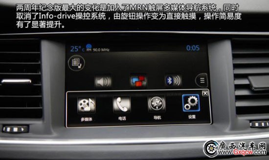 東風(fēng)標(biāo)致508內(nèi)飾分為深色和淺色兩種,淺色內(nèi)飾更顯檔次,家居感較強(qiáng),而深色內(nèi)飾更具運(yùn)動(dòng)感。三輻式方向盤上集成有大量控制按鈕,和C5不同的是,C5的多功能按鈕是無法隨方向盤轉(zhuǎn)動(dòng)的,這一點(diǎn)508做得更好,使用這些按鍵非常得心應(yīng)手,而且按鍵的手感非常舒適。在售的新款508均取消了中央集控控制區(qū),轉(zhuǎn)而采用MRN觸控導(dǎo)航,同時(shí)還擁有7英寸高分辨率顯示屏,并提供路口3D放大實(shí)景圖顯示和多樣的興趣點(diǎn)查詢功能,在使用上更加便捷。另外,平視顯示系統(tǒng)也是508相比于同級別中級車的優(yōu)勢配置。