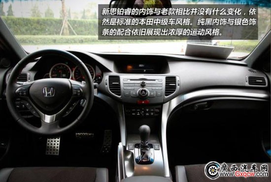 新思鉑睿的內(nèi)飾與老款相比并沒(méi)有什么變化,依然是標(biāo)準(zhǔn)的本田中級(jí)車(chē)風(fēng)格。純黑內(nèi)飾與銀色飾條的配合依舊展現(xiàn)出濃厚的運(yùn)動(dòng)風(fēng)格。與老款相比,新增的紅色縫線是提升內(nèi)飾運(yùn)動(dòng)氛圍的最大利器,防滑鋁合金運(yùn)動(dòng)踏板也省去了車(chē)主后期改裝的麻煩。在配置上,與老款車(chē)型相比,新思鉑睿全系取消了衛(wèi)星導(dǎo)航系統(tǒng)以及倒車(chē)影像系統(tǒng),這方便了不同需求的車(chē)主后期對(duì)導(dǎo)航屏幕區(qū)域的改裝。