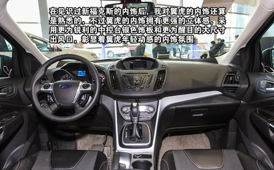 翼虎的內(nèi)飾設(shè)計(jì)也給我們一種似曾相識(shí)的感覺,整體風(fēng)格貼近前不久上市的?怂梗贿^較?怂苟愿吡Ⅲw感,而且中央?yún)^(qū)域的面積也更大。當(dāng)然除了設(shè)計(jì)方面,翼虎的用料整體水準(zhǔn)也要比?怂垢叱鲆唤,中控臺(tái)大部分面積采用質(zhì)地更柔軟的材質(zhì)包裹,做工較之前的翼虎乃至之前的福特車型也均有不小程度的提升。