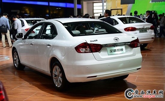新款和悅使用的江淮最新的“寶瓶口”家族前臉,前格柵為上下疊層設計,上層黑色中網配以粗鍍鉻飾條,并采用了LED行車燈。新車尾部造型變化不大,線條簡潔流暢,采用了車尾反光片。整體上看,更具時尚氣息。