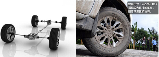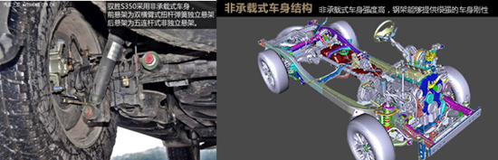 非承載式車身,專業(yè)越野底盤,前懸架為雙橫臂式扭桿彈簧獨(dú)立懸架,后懸架為五連桿式非獨(dú)立懸架,配合一套分時(shí)四驅(qū)系統(tǒng),有著不錯(cuò)的通過性能.采購(gòu)美國(guó)博格華納的四驅(qū)分動(dòng)器,實(shí)現(xiàn)與全球四驅(qū)技術(shù)同步。新馭勝S350AT車型的驅(qū)動(dòng)模式分為后輪驅(qū)動(dòng)、智能四驅(qū)模式。適時(shí)智能四驅(qū)模式結(jié)構(gòu)簡(jiǎn)單,穩(wěn)定性高,堅(jiān)固耐用。陡坡、泥濘或者雪地路面都可輕松應(yīng)對(duì),既能保證車輛的動(dòng)力性和通過性,又能兼顧燃油經(jīng)濟(jì)性。