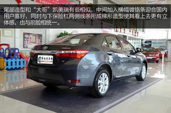 在家用車向年輕和個性化發(fā)展的時候,老款卡羅拉也不能滿足年輕用戶的需求,它首先需要的是一副個性的外觀,這就是全新卡羅拉。新車以海外歐版為藍本打造,采用家族最新的KEEN LOOK設計語言,年輕和時尚就這么凸現(xiàn)出來了。中網與大燈融合在一起,前臉的整體感很強。尾部設計有些厚重,但依舊通過鋒利的線條展現(xiàn)了它的犀利和立體感。