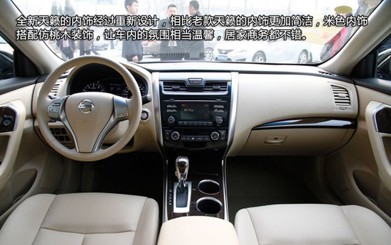 新一代天籟的內(nèi)飾共有淺色和深色兩種配色可選,淺色的內(nèi)飾整體依舊采用了大量的木紋裝飾條和真皮包裹,與老款相比內(nèi)飾的整體布局稍有變化,之前被分隔在最上面的液晶屏和控制區(qū)域已經(jīng)和空調(diào)區(qū)連在了一起,而且新一代車型也采用了更為先進(jìn)的觸屏設(shè)計,所以也節(jié)省了大量的按鍵和控制區(qū)。