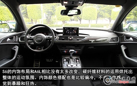 與外觀一樣,S6在內(nèi)飾設(shè)計(jì)方面與A6L 50TFSI的區(qū)別也不大。除了那些十分直接的S6標(biāo)示外,最大的不同就是在用料方面舍棄了木質(zhì)材料,采用更符合目前汽車輕量化發(fā)展趨勢(shì)的碳纖維材料,這樣的設(shè)計(jì)也頓時(shí)讓S6有了運(yùn)動(dòng)的個(gè)性。