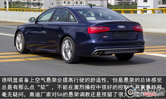 最后讓小齊不解的地方是奧迪S6的懸架調(diào)教。奧迪S6標(biāo)配的自適應(yīng)空氣懸掛兼顧車輛操控性和舒適性。通過奧迪駕駛模式選項(xiàng)的個(gè)性化設(shè)定,用戶能夠改變空氣彈簧的工作狀態(tài)。在自動(dòng)模式下,當(dāng)車速超過120公里/小時(shí),空氣彈簧會(huì)自動(dòng)將車身高度降低10毫米以增加高速行駛穩(wěn)定性,并減少空氣阻力;在動(dòng)態(tài)和高效模式下,車身可降得更低;而舒適模式下,車身始終保持默認(rèn)高度。在時(shí)速不超過80公里/小時(shí)的情況下,駕駛者可通過激活升高模式,將車身離地間隙增加20毫米,以臨時(shí)提升車輛的通過性。很明顯裝備上空氣懸架會(huì)提高行駛的舒適性,但是懸架的總體感覺總是有那么點(diǎn)“軟”,不能在激烈操控中很好的控制車身重量轉(zhuǎn)移。毫無疑問,奧迪廠家對(duì)S6的懸架調(diào)教還是預(yù)留很大的提升空間。