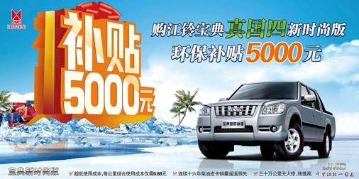 江鈴作為知名皮卡廠商,一直以來不斷提升產(chǎn)品品質(zhì)與技術(shù)水平,未雨綢繆節(jié)能減排,不僅產(chǎn)品品質(zhì)過硬,響應(yīng)國(guó)家環(huán)保號(hào)召,對(duì)旗下寶典新時(shí)尚版車型采取環(huán)保補(bǔ)貼,購車立減5000元。