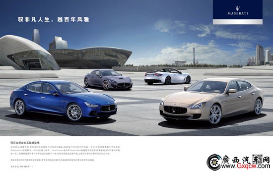 (廣西汽車網(wǎng) 訊)2014年7月8日,南寧——享譽(yù)全球的意大利豪華汽車品牌瑪莎拉蒂南寧中致遠(yuǎn)帝利3S中心將于7月12日盛大啟幕,斏倨煜旅餍亲{陣容整裝待發(fā),將為廣西地區(qū)的瑪莎拉蒂愛(ài)好者帶來(lái)一場(chǎng)豪車盛宴。