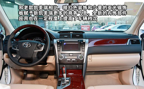 乘坐空間方面,凱美瑞在沒有增加軸距的情況下實現(xiàn)了更開闊的室內(nèi)空間。前排座椅前移7mm,后排座椅位置后移8mm后,前后座椅的距離增加了15mm,達(dá)到980mm。前排座椅靠背形狀的進(jìn)一步改良,使得后排膝部空間增加了46mm。