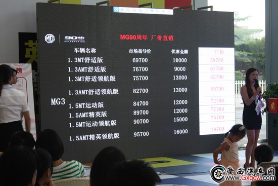 (廣西汽車網(wǎng) 訊)MG90周年慶典南寧站7月12日在南寧首家MG榮威雙品牌4S店——南寧建名4S店外廣場盛大舉行。恰逢南寧建名店開業(yè)活動慶典,據(jù)介紹兩大慶典活動邀請了英國BTCC拉力賽專業(yè)賽車手特技車表演助陣,免費豪華的英式酒會、拉斯維加斯狂歡夜,更有MG2.8萬元起競拍,ipad等大獎拿不斷,豐富活動狂歡不斷……讓到現(xiàn)場的客戶享受了一次充滿激情的夜晚。