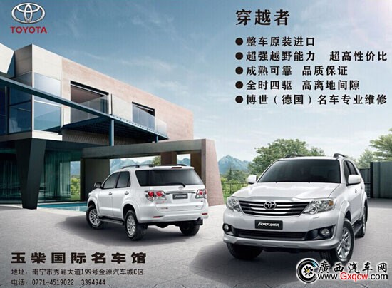玉柴國際名車館將攜進(jìn)口豐田穿越者在7月17日-20日的第三屆廣西汽車文化節(jié)首次亮相銷售,僅售31.8萬元,展位就在會展中心二樓9號館。豐田穿越者,整車原裝進(jìn)口7座硬派SUV!