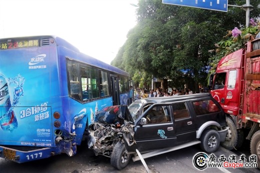現(xiàn)場處理該起事故的南寧市公安局交警支隊四大隊盧滿紅中隊長告訴記者,事故發(fā)生在下午4時30分許,交警四大隊接到報警后,迅速趕到現(xiàn)場看到,該事故造成包括肇事貨車在內(nèi)的10輛車(其中含1輛摩托車和1輛自行車)不同程度受損。見到事故路段的交通有些擁堵,現(xiàn)場交警一邊指揮疏導交通,一邊將在該事故中輕微受損的車輛靠路旁停下。隨后,盧滿紅還了解到,另有2輛小轎車在該事故中由于只是蹭破了點油漆,在交警到來之前已自行駕車離開了。