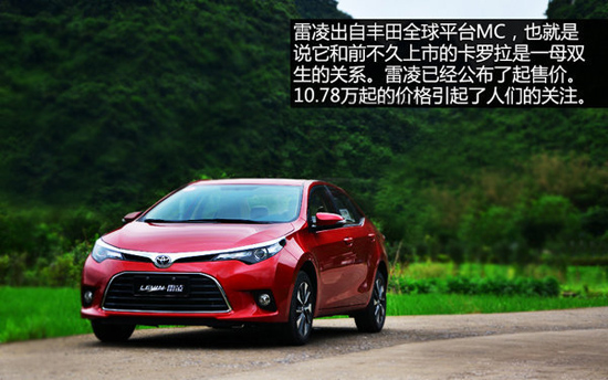 雷凌二字,是對卡羅拉LEVIN英文部分的漢語音譯,雷霆萬鈞之勢,凌厲凌駕于上空。好一副磅礴的樣子。這個(gè)名字用在廣汽豐田這款A(yù)級(jí)車上,倒也合乎此車情理。雷凌出自和全新卡羅拉相同的MC平臺(tái)。起售價(jià)10.78萬元,和卡羅拉也相仿。打仗親兄弟,面對決殺激烈的A級(jí)車市場,這對兄弟看來要背靠背面戰(zhàn)了......