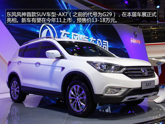 在本屆北京車展中,東風風神發(fā)布了全新SUV車型—AX7,新車就是之前曝光內(nèi)部代號為G29車型。在外形設計上AX7并不遜于合資品牌車型,全新的家族前臉也將運用到未來的東風車型上。AX7的競爭對手鎖定在哈弗H6、奔騰X80等車型上,新車預計今年11月上市,預計售價13-18萬元......