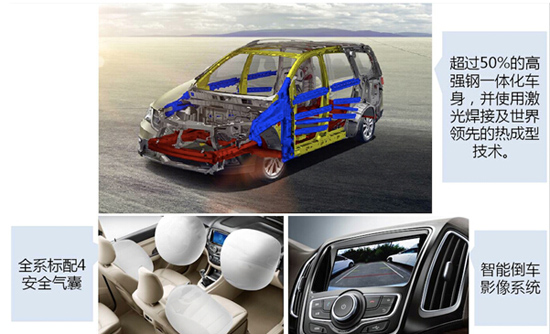 全系標(biāo)配四氣囊,按照五星級安全標(biāo)準(zhǔn)打造:上汽通用五菱首次在寶駿730上引入了“全員安全保護”的理念,并完全按照C-NCAP五星級標(biāo)準(zhǔn)研發(fā)打造。使用超過50%的高強鋼一體化車身,在制造工藝上使用世界領(lǐng)先的熱成型技術(shù)以及激光焊接等技術(shù),加上全系標(biāo)配4安全氣囊、兒童安全座椅接口、“ABS+EBD+HHC+VDC”,該車還運用了ESP車身電子穩(wěn)定系統(tǒng)等科技化主被動安全配置,為一家人筑起一道安全的屏障。