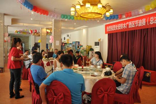 通過(guò)一番角逐之后,本次長(zhǎng)安鈴木鋒馭節(jié)油賽—廣西區(qū)域總決賽的成績(jī)已新鮮火熱的出爐了!頒獎(jiǎng)結(jié)束后,選手們?cè)诋?dāng)?shù)氐馁e陽(yáng)美食街里進(jìn)行了慶功宴!