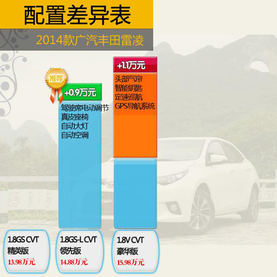 廣汽豐田雷凌雖然入門(mén)價(jià)格較低且基本配置比較齊全,可新銳版僅有手動(dòng)車型可選,對(duì)于目前的市場(chǎng)需求來(lái)看并不能滿足大部分用戶需求。而精英版車型在配置上基本能做到比較齊全,如鋁合金輪圈、天窗等配置已經(jīng)在配置表上出現(xiàn),能很好地滿足日常使用所需。不過(guò)要說(shuō)高性價(jià)比還得是領(lǐng)先版,在增加購(gòu)車成本不多的情況下增加了不少后期加裝困難且價(jià)格不菲的配置。頂配的豪華版只有1.8L車型所能提供,雖然從安全以及便利性上都有所提高,但從總價(jià)以及單一排量上來(lái)看并沒(méi)領(lǐng)先版值得選購(gòu)。