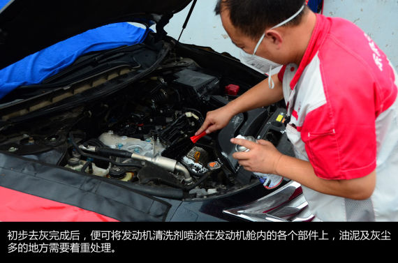 使用線束保護劑前我們有必要先給發(fā)動機洗洗澡,除去發(fā)動機運轉(zhuǎn)產(chǎn)生的灰塵和油液蒸發(fā)造成的油泥污垢。建議大家選擇通風良好的地方施工并為車輛做好防護措施,最重要的別忘了為自己佩戴口罩和手套。