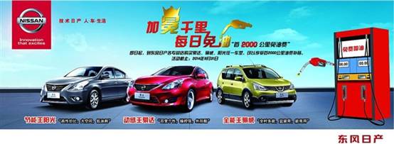 即日起,到東風日產(chǎn)弘帆專營店購買騏達、陽光、驪威任意一款車即可享受首2000公里油費補貼,心動不如趕快行動,那么好的活動去哪里找,來弘帆就有了!