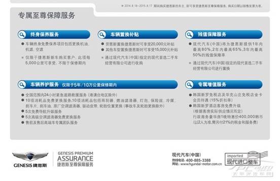 2014.8.18—2015.8.17期間(時(shí)間以銷售發(fā)票為準(zhǔn))購(gòu)買捷恩斯的車主即可享受捷恩斯至尊保障服務(wù),包括終身保養(yǎng)服務(wù)、車輛置換補(bǔ)貼,殘值保障服務(wù),車輛養(yǎng)護(hù)服務(wù),專屬增值服務(wù)等。