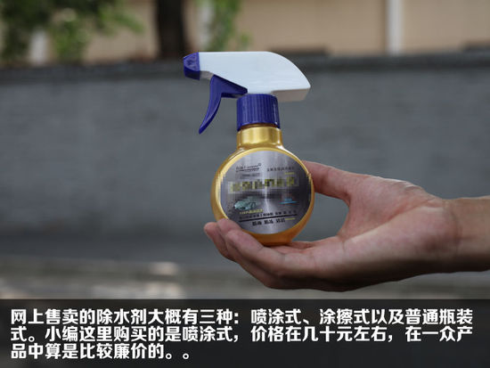 試過了家居三件套,終于輪到網(wǎng)上說的專業(yè)除水劑了,小編對(duì)此也很是期待,看其說明上寫的是驅(qū)水不留痕跡,雨天行車時(shí),當(dāng)雨水落在汽車玻璃上,讓汽車玻璃有荷葉般的效果,能夠使雨滴不依附在玻璃上。形成晶瑩的雨珠順著玻璃留下,不留痕跡。
