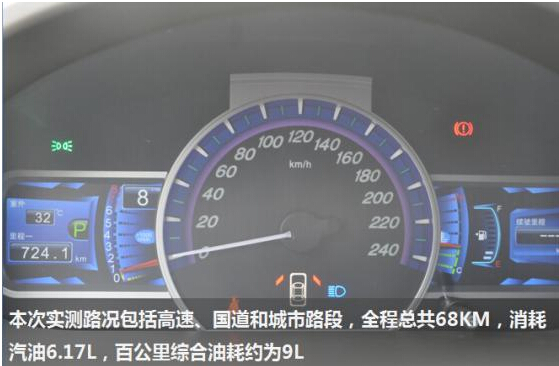 在大家普遍關(guān)心的油耗方面,我們也進(jìn)行了測(cè)試,實(shí)測(cè)路況包括高速、國(guó)道和城市路段,測(cè)試方式采用常用的“兩次加滿油”法:行駛到加油站的時(shí)候記錄下里程表數(shù)為724KM,然后加滿油便開(kāi)始測(cè)試,測(cè)試完畢后再次開(kāi)到加油站,這時(shí)里程表數(shù)為792KM,由此得出測(cè)試總里程為68KM。測(cè)試完成,再次加滿油,加油量為6.17L,得出此次測(cè)試的綜合油耗約為9L/100KM,這成績(jī)對(duì)于排量為2.4L的大型SUV來(lái)說(shuō),算很優(yōu)秀。