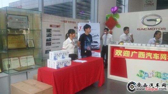 (廣西汽車網(wǎng) 訊)8月30日,由廣西汽車網(wǎng)攜手廣汽傳祺南寧昱科4S店共同舉辦的廣汽傳祺全系車型團(tuán)購會(huì)在南寧昱科4S店如期進(jìn)行,活動(dòng)環(huán)節(jié)比較簡單,沒有演藝表演,也沒有過多現(xiàn)場(chǎng)煩瑣的講解,領(lǐng)導(dǎo)的嘮叨!一切盡在安靜、舒適及溫暖的氛圍中,銷售顧問和網(wǎng)友一對(duì)一的交流,現(xiàn)場(chǎng)還有充足的糕點(diǎn)、清涼飲料等美食供應(yīng),真真享受!
