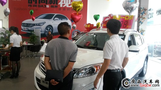 活動(dòng)從上午10點(diǎn)正式開始一直到下午5點(diǎn)半,網(wǎng)友們雖未曾約好怎么到店,但也似乎心有相通,排隊(duì)而來,使得彼此都有充足的時(shí)間與銷售顧問一對(duì)一交流,下手前對(duì)意向車型有更進(jìn)一步的了解!據(jù)統(tǒng)計(jì)當(dāng)天到店網(wǎng)友批次為51批,其中關(guān)注最多的車型是,GS5城市SUV,GA3和剛上市的GA3S。團(tuán)購優(yōu)惠GS5最高優(yōu)惠3萬元,GA3享受9折另送禮包,GA3S因?yàn)槭莿偵鲜械男萝囆,所以?yōu)惠不大,其它車型都有不同程度的優(yōu)惠。除了以上是現(xiàn)場(chǎng)的優(yōu)惠外,通過廣西汽車網(wǎng)報(bào)名的網(wǎng)友當(dāng)天現(xiàn)場(chǎng)訂車還額外得到500元的現(xiàn)金購車優(yōu)惠,許多網(wǎng)友對(duì)此給予了一個(gè)大大的贊,認(rèn)為這樣的團(tuán)購厚道!