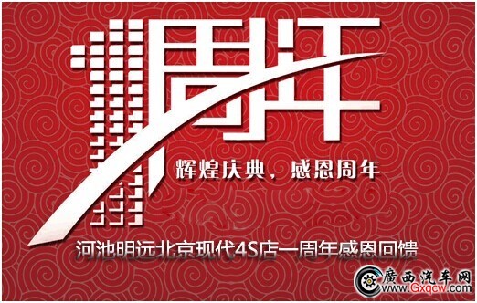(廣西汽車網 訊)河池明遠北京現代滿一周歲啦!周年賀歲蛋糕新鮮出爐!歡迎廣大新老車友上門搶蛋糕!針對新老車友推出的感恩活動將于9月10日隆重面世!活動期間凡進店維修保養(yǎng)的客戶均來者有禮!